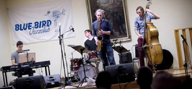 Det blev välkända örhängen som "Att angöra rätt en brygga", "Öppna landskap" och "Så skimrande var aldrig havet". Kören, Oppmanna och Vångas församlingskör, är döpt efter en äppelsort som odlas i Vångatrakten och den sjöng under kvällen en psalm med text av Harry Martinsson, "De blomster som i marken bor". -Vi har en blandad repertoar och kom in på jazzen tack vare Berndt Sjögren. Vi har samarbetat innan några gånger, sa körledaren Ingvar Jönsson. När kören och Ingemar Torstensson kvintett hade tackat för sig var det en kort kaffepaus innan en yngre generation musiker tog över på scenen. Karl Månsson kvartett, med årets Blue Birdstipendiat Karl Månsson på saxofon, tog bebopen vidare mot mer modern jazz. -Det är lite tanken med festivalen, att blanda de något äldre med de yngre lejonen, sa Bronson B. Månsson.